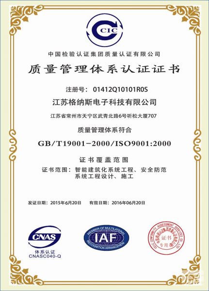 江苏格纳斯电子科技有限公司是一家专业从事建筑智能化弱电系统集成的服务商及设备供应商,是常州市安全技术防范协会会员单位、并先后获得国家相关部门颁发安防资质和电子与智能化工程专业承包、计算机信息系统集成等资质证书。 公司自2004年创建以来,经过十余年的努力,并凭借强大的技术实力,丰富的工程管理经验,完善的售后服务体系,已经成为以江苏省智能弱电及系统集成行业的高新技术企业,并在全国等多个城市都设有分公司及办事处。在这里可以享受弱电系统集成的一站式服务,更多企业开始享受格纳斯电子提供的专业智能弱电系统集成产品和服务,成为智能、安全、高效的企业典范。 作为一家高新技术企业,公司始终坚持“以客户为中心”的核心价值观 ,以“用心服务 永不止步”为服务理念,将最先进的技术和产品奉献给...... [ 查看详情 ]