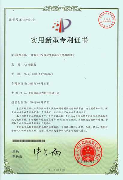上海国试电力科技有限公司(简称:上海国试),经过多年的发展,已成为国内最具规模的专业研发和生产高压试验设备和测试仪器的高新技术企业,开发生产VF系列变频串联谐振交流耐压试验装置,继保-1000型微机继电保护测试仪,GBR-1000型变压器绕组变形测试仪等几十种仪器和设备,大部分产品拥有自主知识产权,通过国家权威部门的检测和鉴定,是国家电网建设和改造的推荐产品. 上海国试作为高技术企业,依托上海各科研院校的优势,不断研发新产品,荣获多项自主知识产权的专利技术,先后获得低干扰变频电源、用于监测电力系统谐波电流的电场探头、无局放的谐振耐压试验装置、抗干扰的调频谐振耐压试验系统抗干扰的高压输配电网参数测试仪、基于IPM模块变频高压互感器测试仪等十几项发明专利和实用新型专利。在高压试验行业享有较高的声誉。 ...... [ 查看详情 ]