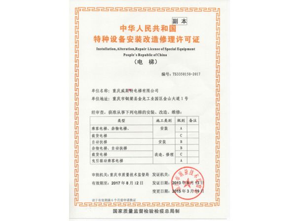特种设备安装改造修理许可证