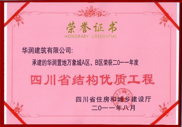2012年度四川省优秀安装质量奖(蜀安杯)