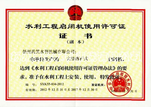 闸门生产许口证