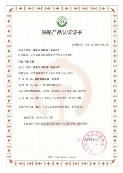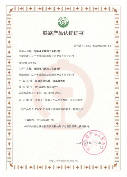 沈阳业兴铁路工务器材厂始建于2005年,坐落于辽宁省沈阳市沈北新区,厂区占地面积8000㎡,厂房建筑面积3800㎡。设有机加车间、装配车间、电焊车间等生产车间,是铁路系统工务产品基地之一。   企业拥有多年从事铁路养路机械研发工作的中、高级工程技术人员和各类管理人员,在产品开发方面具有丰富的经验和独创的见解;工厂设备齐全,拥有各类设备60余台,专用试验台4台,各类专用检测器具及计量器具40多种,并铺设有40延长米的标准试验线路和道岔试验线。   几年来,工厂针对铁路工务部门的发展需要,先后研发并生产了十多种具有自主知识产权的养路械产品,同时工厂还生产DJ-01型防盗断轨急救器、提速线路断轨急救器、轨距挡板、螺栓道钉、轨距杆等工务产品。   产品已在铁路局、工程局及地方铁路得到广泛应用,其中YQD-1型道岔换铺机组...... [ 查看详情 ]